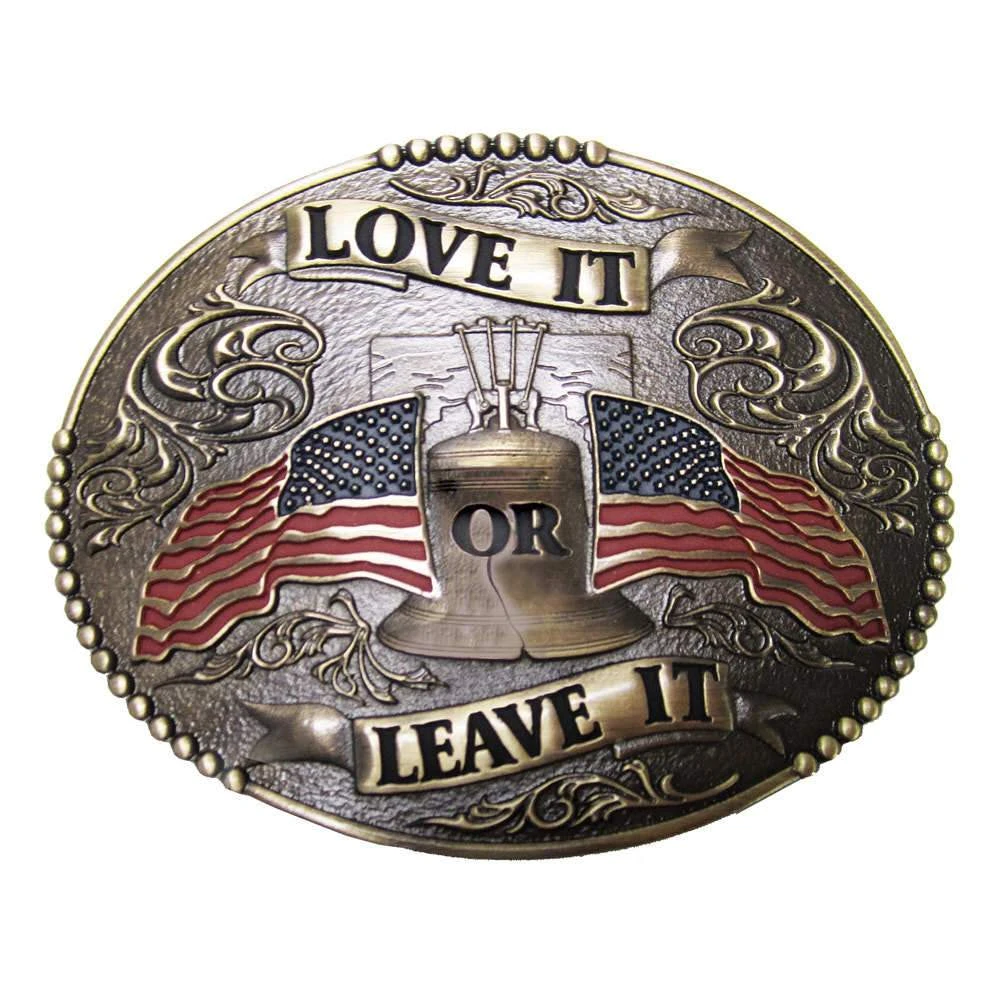 - Love It or Leave It banner with Liberty Bell design