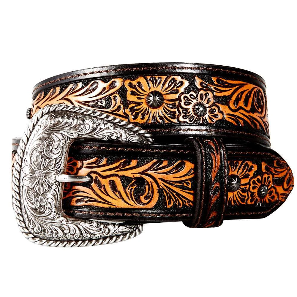 Women’s Brown Flower Tooled Belt