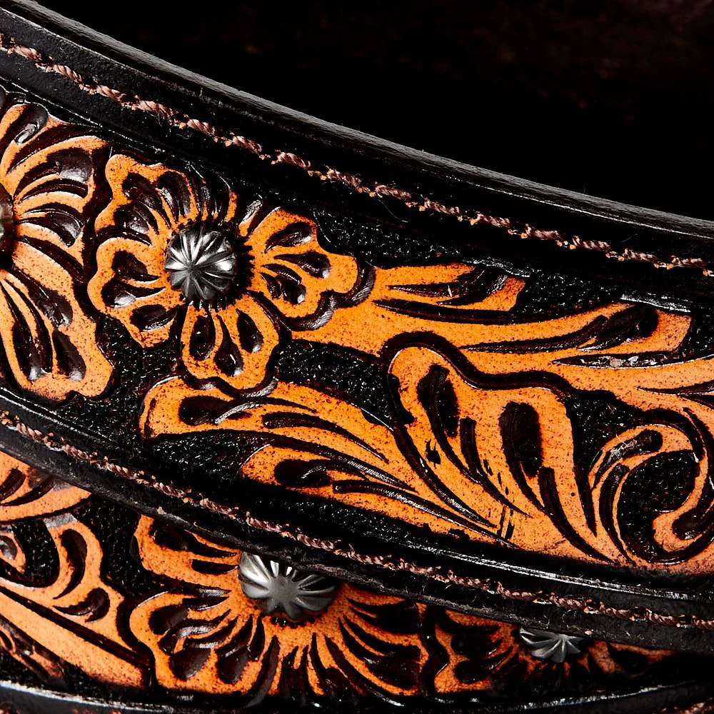 - Hand Tooled Flowers Centered With Parachute Nail Head Spots