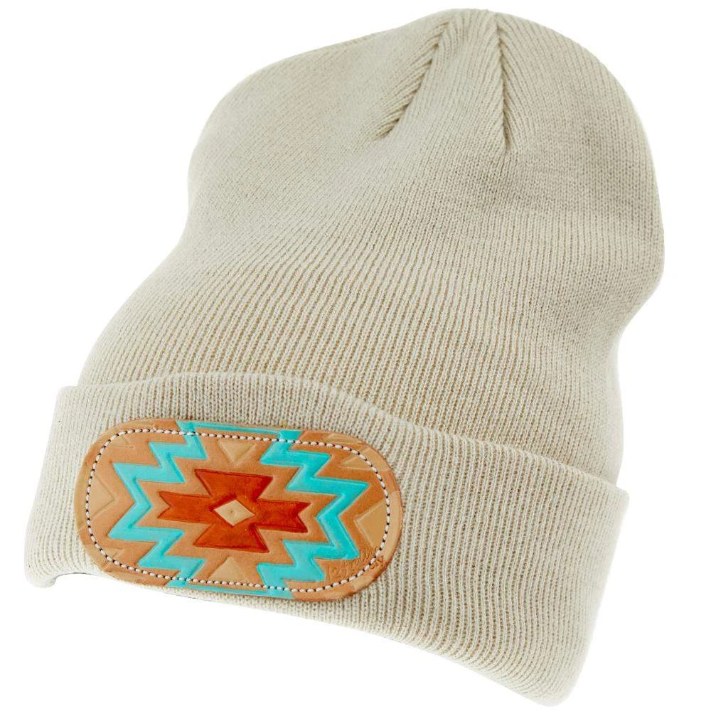 This trendy leather patch beanie by Mcintire Saddlery is great for winter!