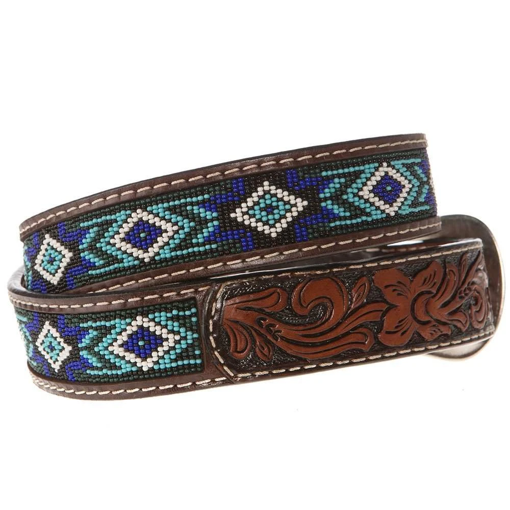 Update your belt this season with our brown belt accented with beading of blue and turquoise colors. This belt is a Western Fashion Accessories. XIBB101
