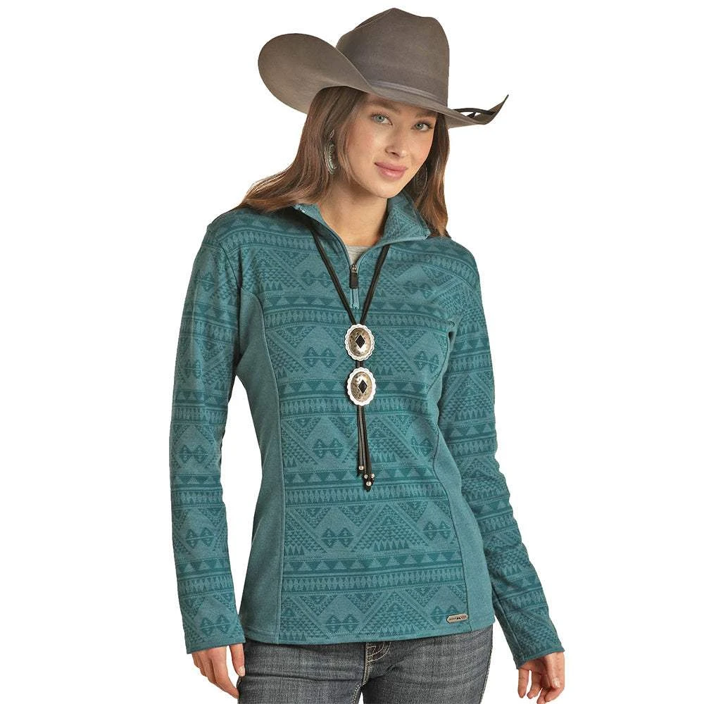 Women’s Panhandle Teal Heather Aztec Knit Henley Pullover